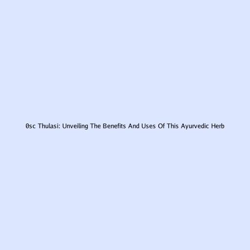 0sc Thulasi: Unveiling The Benefits And Uses Of This Ayurvedic Herb