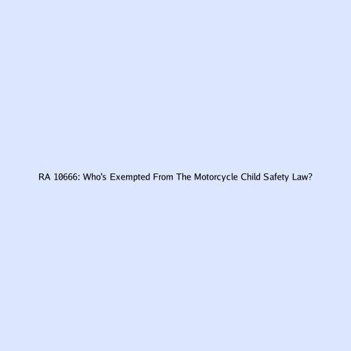 Hey guys! Ever wondered who gets a pass under Republic Act No. 10666, a.k.a. the Children’s Safety on Motorcycles Act in the Philippines? Well, buckle up, because we’re diving deep into the details of this law to figure out who is exempted and why. Understanding this is super important for every parent and motorcycle rider in the Philippines, so let’s get started!